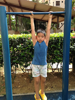 Reese has taken an interest in physical activities. Has been very eager to try and show off his 'skills' in climbing, scooting, parkour and many more. I am glad that he is doing more physical activities.... this boy needs to work on his gross motor skills!